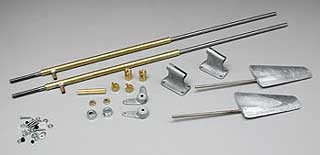 FORNECIMENTO SOB ENCOMENDA PRAZO DE ENTREGA EM TORNO DE 30 DIAS.PREÇO SUJEITO A CONFIRMAÇÃO This is the running hardware kit for the Dumas Dauntless 49.5" and the American Enterprise 52". This is a twin rudder, twin solid shaft drive for two 6 volt motors. Includes: 2 #2702 Drive shaft (stainless steel, 3/16"x16", threaded 10-32 at one end) 2 #2803 Stuffing box (brass, with oilite bearings, 7.25" long for 3/16" shaft) 2 #3518 Rudder assembly (stainless steel, rudder is 3" long, 5.25" total) 1 #3504 Rudder arm (metal, for 1/8" shaft) 1 #3515 Double rudder arm (metal, bellcrank style, for 1/8" shaft) 2 #3317 Strut assembly (cast aluminum, for 3/16" shafts) 2 #7013 Drive dogs (brass, threaded 10-32) 2 #7017 Locking prop nut (threaded 10-32) 2 #7016 Thrust washer (nylon, for 3/16" shaft) Screws, nuts, bolts and washers for assembly Instructions for assembly. Requires 2 motors (or two 3.5cc inboard engines), motor (engine) couplings and left and right props. IMAGENS E FOTOS MERAMENTE ILUSTRATIVAS. APARÊNCIA, OPERACIONALIDADE E CARACTERÍSTICAS DO PRODUTO DEPENDEM DE COMO ELE É MONTADO OU UTILIZADO PELO USUÁRIO.